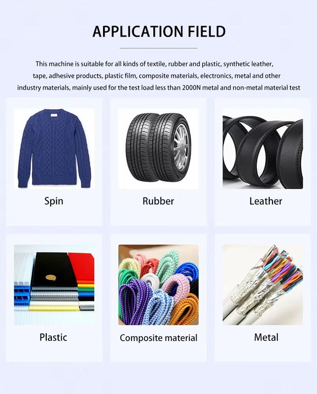 • Comprehensive testing capabilities including tension, compression, bending, shearing, tearing, and peeling